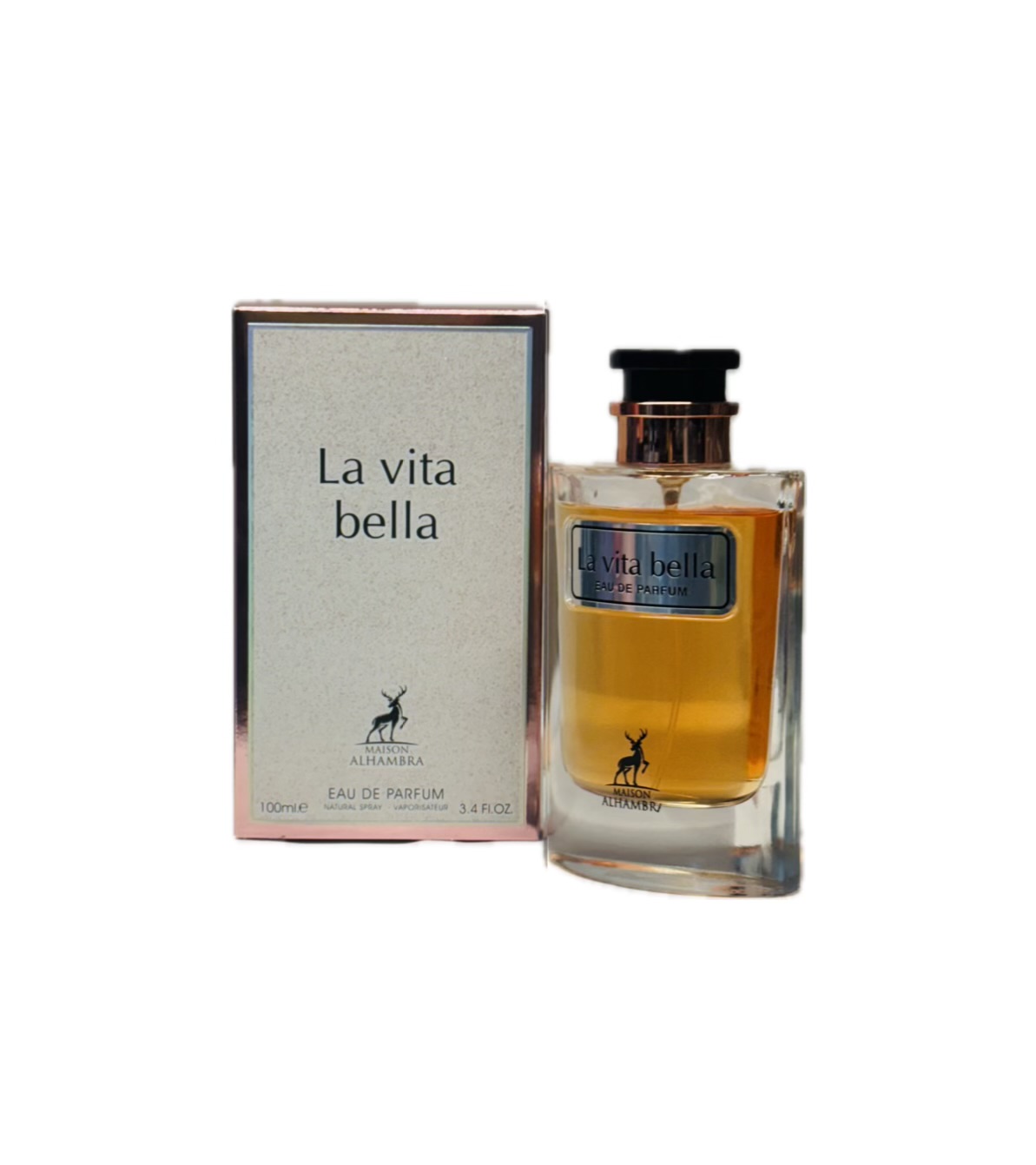 La Vita Bella de Maison Alhambra est une fragrance gourmande et florale, inspirée par la beauté de la vie et l’élégance simple. Elle s’ouvre sur des notes sucrées et fruitées, créant une première impression joyeuse et pétillante, suivie d’un cœur floral, avec des touches de jasmin et de fleur d’oranger. La base, douce et chaleureuse, est dominée par des accords de vanille, de caramel et de musc, apportant une sensation enveloppante et réconfortante. Parfait pour ceux qui recherchent une fragrance féminine, douce et gourmande